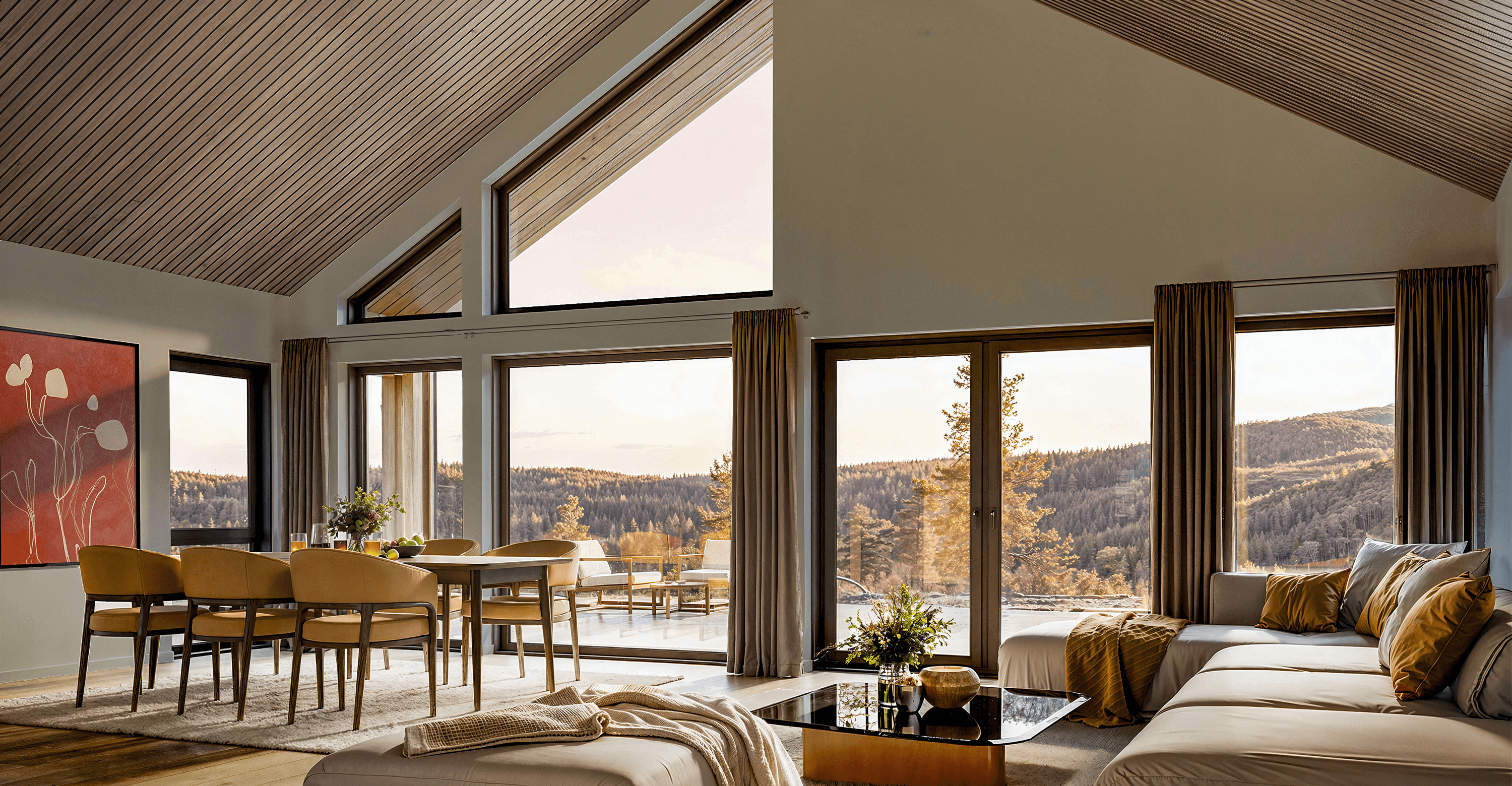 Med fasadens rene linjer, har Lande et uttrykk som passer inn i det minimalistiske skandinaviske designet. De store vindusflatene sørger for godt lysinnslipp og sørger for en luftig atmosfære, samtidig som de gir utsikt til hagen eller omgivelsene.