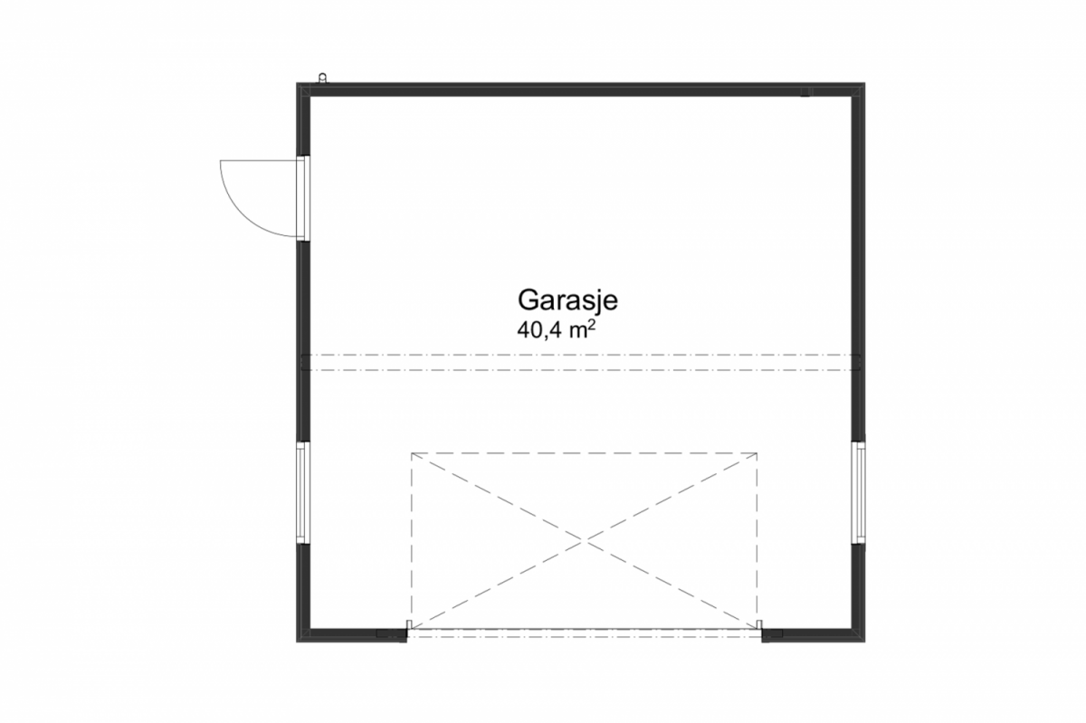 Garasjen består av ett stort garasjerom på 40m2, med vinduer på både øst- og vestveggen for godt lysinnslipp.